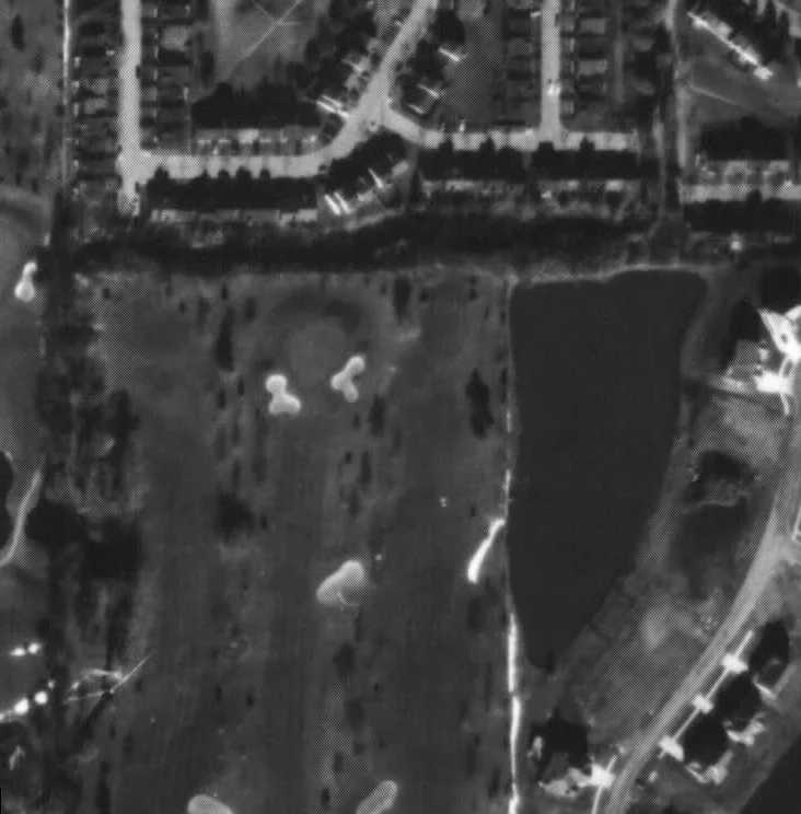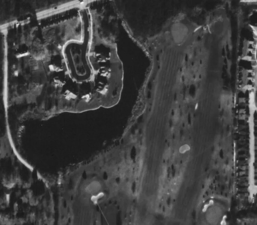 The creek bed was diverted, beginning where it enters the golf course property just north of the # 12 tee boxes. It’s original channel followed the east side of the # 12 fairway, then crossed the 12th, 11th and 8th fairways in a southwesterly direction to where the current bridge is located on the west side of the #8 fairway. Standing on this bridge and looking in a northeasterly direction you can see the original lay of the land that included the creek bed.